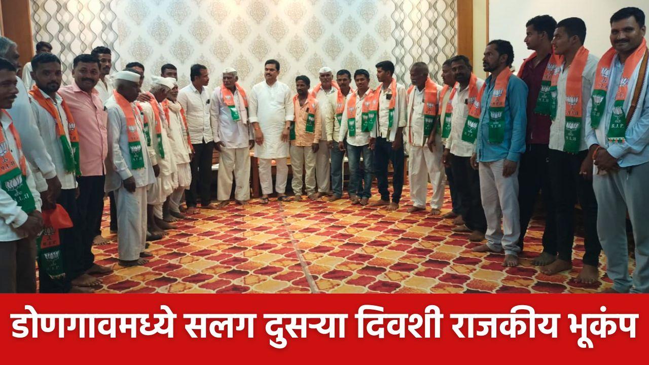 Karjat Jamkhed News : डोणगावमध्ये सलग दुसऱ्या दिवशी राजकीय भूकंप, आमदार राम शिंदे यांच्या नेतृत्वाखाली जेष्ठ व युवा कार्यकर्त्यांचा भाजपात प्रवेश