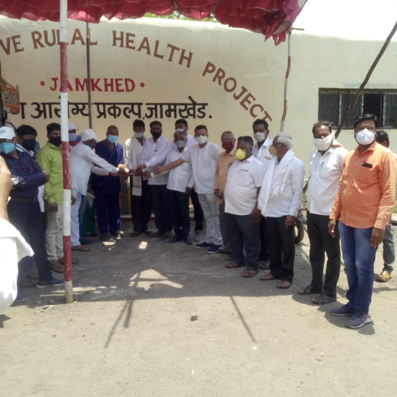 राज्यात कोरोना या महामारीने थैमान घातले असल्याने सर्वांची चिंता वाढत चालली आहे. अशा बिकट प्रसंगी जामखेड येथील आरोळे हॉस्पीटलच्या माध्यमातुन कोव्हीड रुगणावर मोफत उपचार केले जात आहेत. या सामाजिक बांधीलकी जोपासणाऱ्या रुग्णालयास समाजातील सर्व स्तरातुन सर्वतोपरी मदतीचा ओघ चालु असल्याने येथील हजारो कोरोना रुग्णाचे प्राण वाचले आहेत. त्यासाठी आपल्या माध्यमातुन काही मदत झाली पाहीजे या विचारा पोटी जामखेड तालुक्यातील धोंडपारगाव ग्रामस्थांनी आरोळे कोविड सेंटरला पन्नास हजार रुपये रोख, मोफत वीस क्विंटल धान्य व भाजीपाला देण्यात आला.