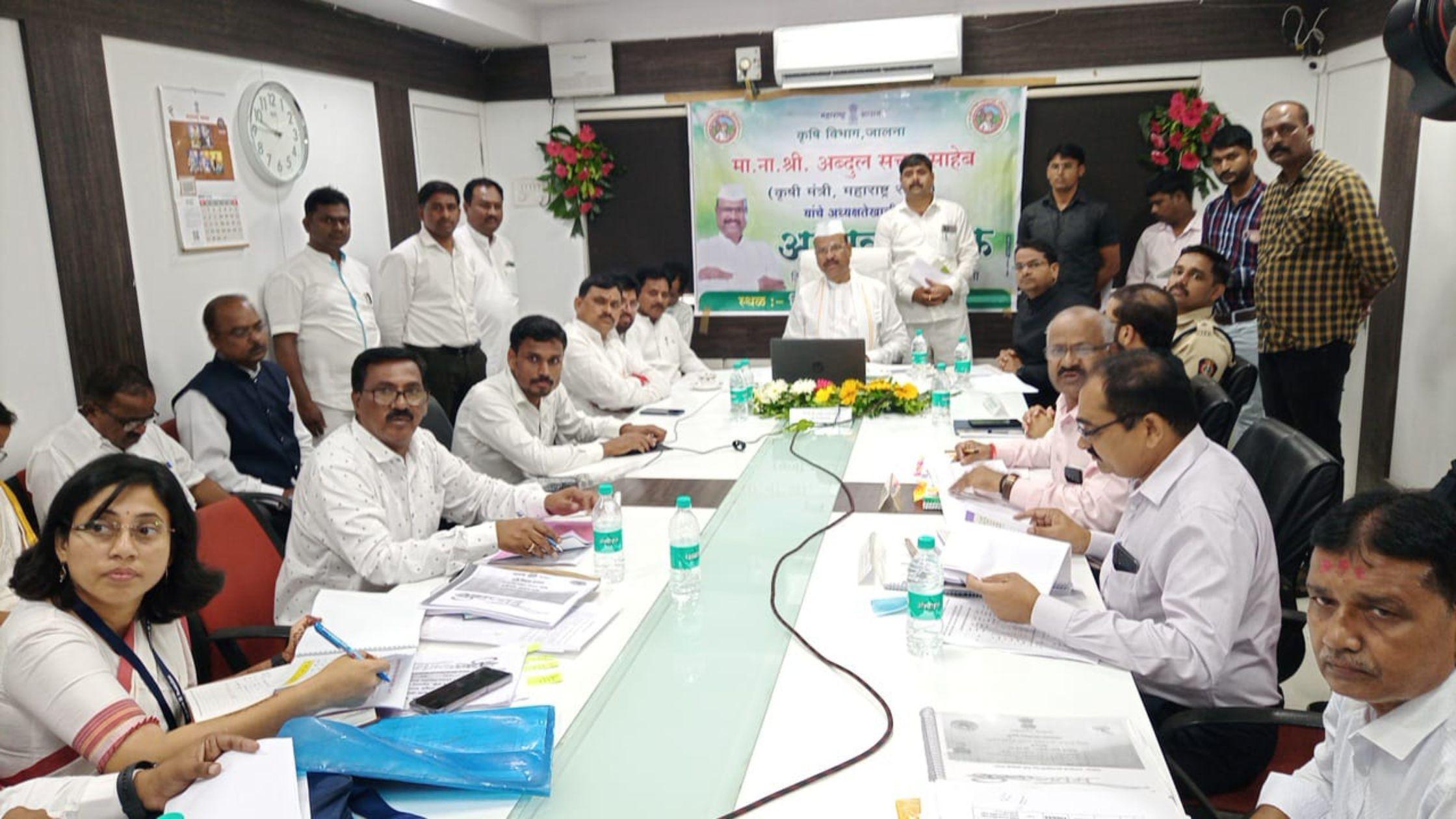 कृषी मंत्री अब्दुल सत्तार हे सध्या जालना जिल्हा दौऱ्यावर आहेत. त्यांनी जिल्हाधिकारी कार्यालयात कृषी विभागाची विभागीय बैठक घेतली. या बैठकीत त्यांनी कृषी विभागाच्या विविध योजनांचा आणि कृषी विभागाकडून सुरु असलेल्या कामांचा आढावा घेतला.