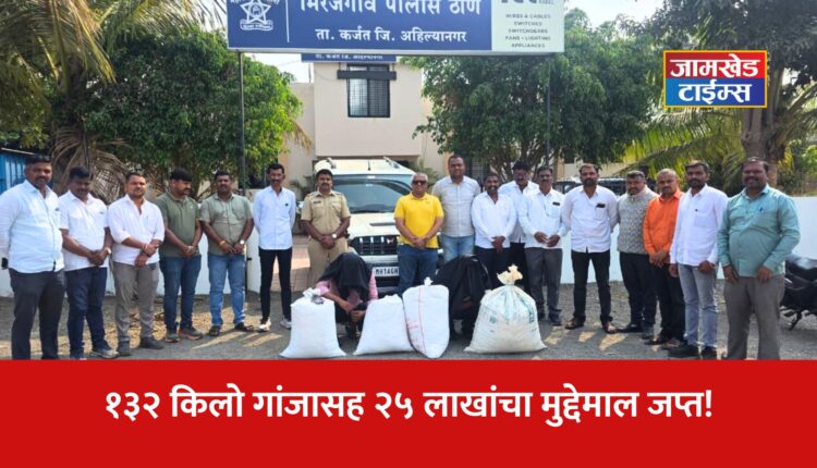 जामखेड टाइम्स वृत्तसेवा : अहिल्यानगर जिल्ह्यामध्ये अंमली पदार्थ विक्री करणाऱ्यांविरोधात पोलिसांनी आता आक्रमक पाऊल उचलले आहे. स्थानिक गुन्हे शाखेने (LCB) कर्जत तालुक्यातील मिरजगाव हद्दीत मोठी कारवाई करत १३२ किलो गांजासह तब्बल २५ लाख ४३ हजार रुपयांचा मुद्देमाल जप्त केला आहे. या कारवाईत दोघा तस्करांना बेड्या ठोकण्यात आल्या आहेत. ही कारवाई १८ रोजी सायंकाळी करण्यात आली. (mirajgaon karjat ahilyanagar news)