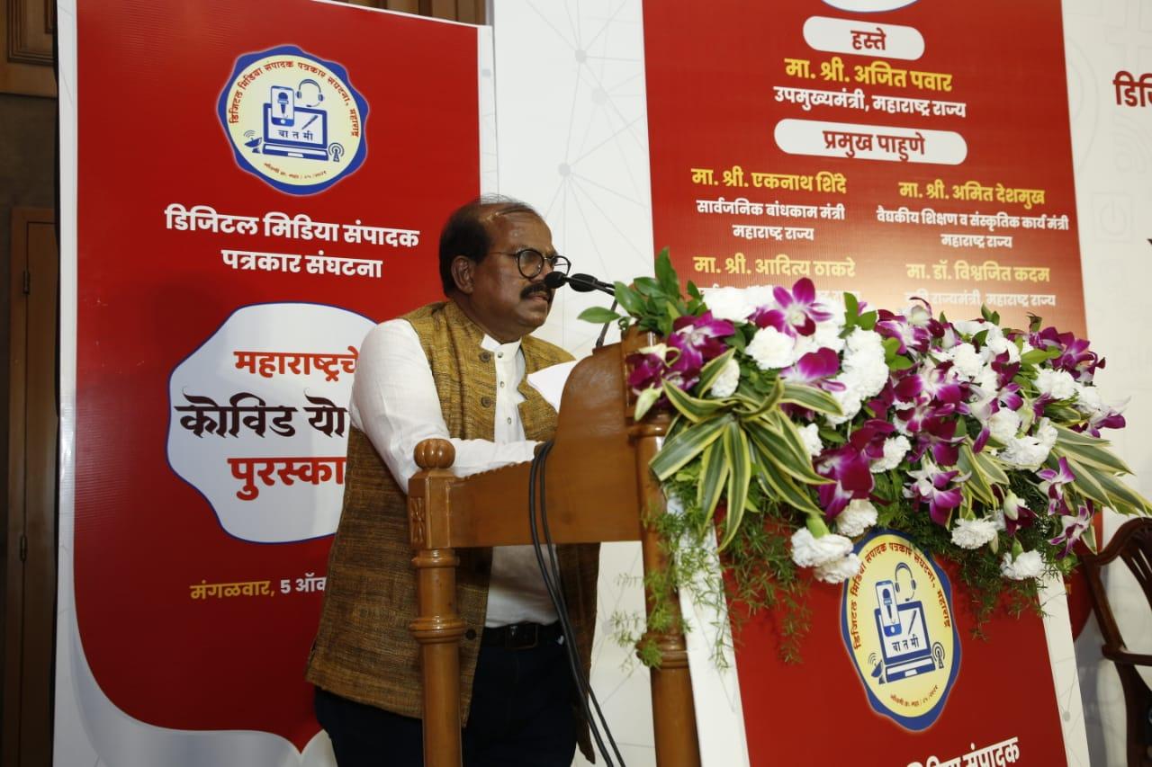 “महाराष्ट्राचे कोविड योद्धा” या पुरस्कार वितरण सोहळ्यात ते बोलत होते. संस्थापक अध्यक्ष राजा माने यांच्या डिजिटल मीडिया पत्रकार संघटनेने या पुरस्कार वितरण सोहळ्याचे आयोजन मुंबईतील सह्याद्री अतिथी गृहात केले होते. या कार्यक्रमास प्रमुख पाहुणे म्हणून राज्याचे आरोग्यमंत्री राजेश टोपे व राज्याचे संस्कृतिक मंत्री अमित देशमुख उपस्थित होते.