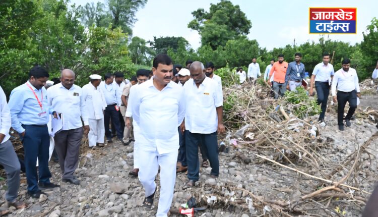 शेवगाव तालुक्यातील भगूर व पाथर्डी तालुक्यातील करंजी या गावांतील अतिवृष्टीग्रस्त भागाची कृषीमंत्री भरणे यांनी पाहणी केली. यावेळी त्यांनी स्थानिक शेतकऱ्यांशी आस्थेवाईक संवाद साधून त्यांना दिलासा दिला.
