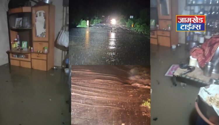 खर्डा येथे अनेक घरात पाणी घुसले आहे. कौतुका नदीला मोठा पुर आला आहे. त्याचबरोबर गोलेकर लवण याठिकाणी ओढ्याला पुर आल्याने वाहतुक बंद झाली आहे.