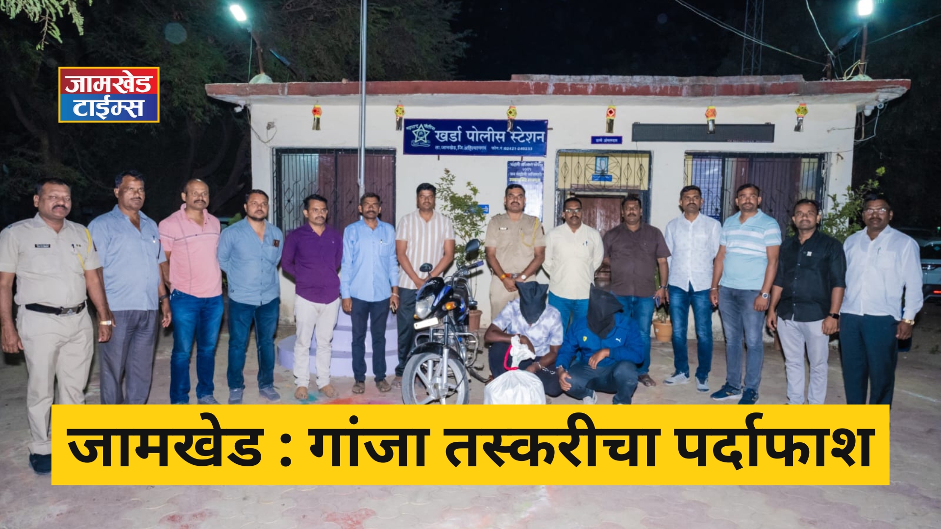 या प्रकरणी पिंपरखेड येथील सचिन नवनाथ गायकवाड व खर्डा येथील सुक्षय उर्फ सोमा सुनिल काळे या दोघा गांजा तस्करांना पोलिसांनी बेड्या ठोकल्या आहेत. पोलिसांनी मोटारसायकलवरील गोणीची झडती घेतली असता त्यात गांजा सदृश्य अंमली पदार्थ मिळुन आला. सदर माल कर्जत तालुक्यातील माहिजळगांव येथील शुभम घुंगरे यांच्याकडुन विक्रीसाठा आणला असल्याचे आरोपींनी कबूल केले. घुंगरे हा फरार आहे.
