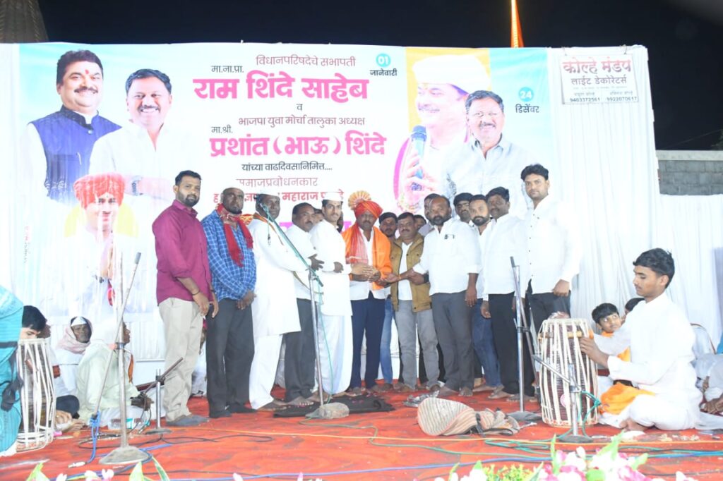 सभापती प्रा.राम शिंदे व प्रशांत शिंदे यांना वाढदिवसाच्या शुभेच्छा देताना पठाडे महाराजांनी ‘अकल्प आयुष्य व्हावे तया कुळा’ या नामदेव महाराजांच्या ओळींचा दाखला दिला. या ओळींचा अर्थ सांगताना ते म्हणाले ‘अकल्प आयुष्य व्हावे तया कुळा’ म्हणजे त्या कुळामध्ये किंवा त्यांच्या वंशांमध्ये गावाची सेवा, धर्माची सेवा, आपल्या माणसांची सेवा, मातीची सेवा करणारे समाजसेवक रत्न पुन्हा पुन्हा घडत रहावे ही अखंड मागणी नामदेवरायांनी केलेली आहे असे म्हणत त्यांनी दोन्ही नेत्यांच्या कार्याचा यथोचित गौरव केला.
