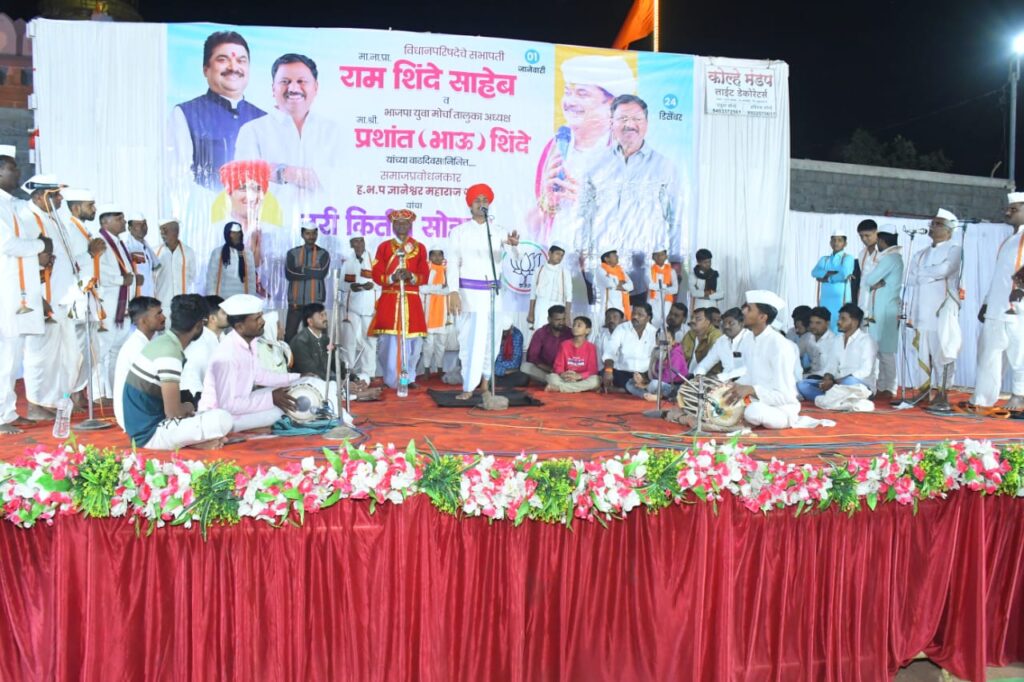 यावेळी बोलताना पठाडे महाराज यांनी विधान परिषद सभापती प्रा.राम शिंदे साहेब व भाजपा युवा मोर्चाचे तालुकाध्यक्ष प्रशांत भाऊ शिंदे यांच्या कार्याचा गुणगौरव केला. समाजाच्या सेवेसाठी जी व्यक्ती अहोरात्र प्रामाणिकपणे काम करतेेय, त्याला पाठबळ द्या असे अवाहन त्यांनी यावेळी केले. जवळेश्वर मंदिर परिसरात पार पडलेल्या या कीर्तन सोहळ्यास शेकडो महिला, पुरूष व तरूण भाविकांची उपस्थिती होती.