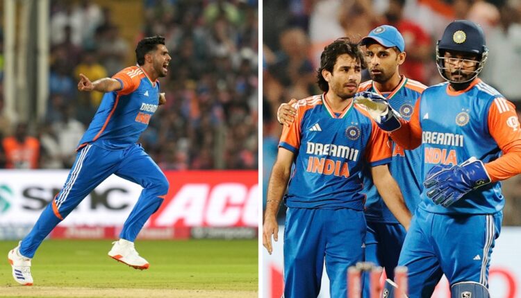 Ind vs eng t20 match scorecard : पुण्यात खेळवल्या गेलेल्या चौथ्या टी 20 सामन्यात भारताने धमाकेदार विजय मिळवला. इंग्लंडविरुद्ध सुरु असलेल्या पाच सामन्यांच्या मालिकेत भारताने तिसरा विजय संपादन करत मालिका जिंकली.भारताने चौथा टी 20 सामन्यात धावांनी विजय मिळवला.चौथ्या सामन्यात फिरकी गोलंदाजांनी धारदार बाॅलिंग करत इंग्लंडच्या फलंदाजांना अडचणीत आणले. वेगवान गोलंदाज हर्षित राणा याने आज टी 20 क्रिकेटमध्ये पदार्पण केले. पदार्पणातच त्याने 3 विकेट घेत भारताचा विजय सुकर केला.