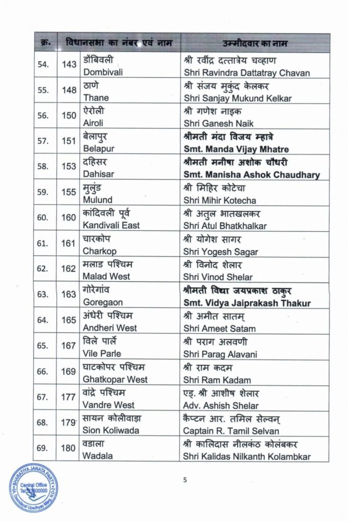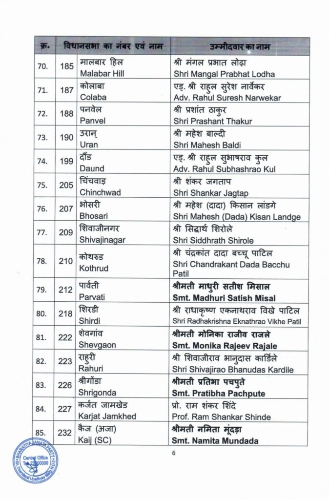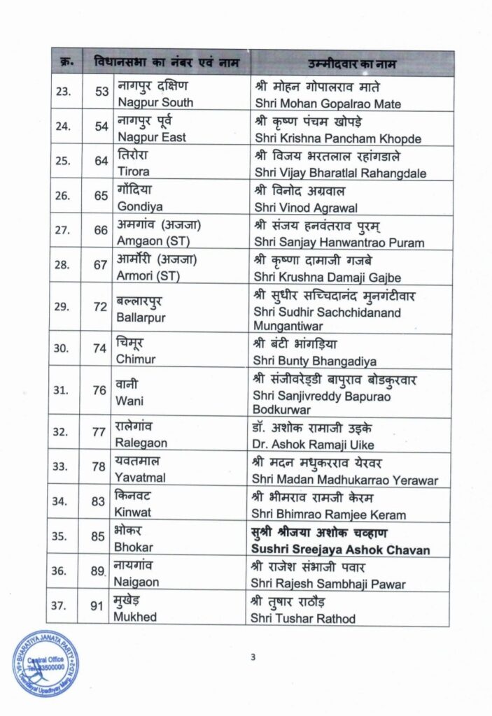 Bjp list maharashtra : भाजप उमेदवार यादी 2024 खालीलप्रमाणे