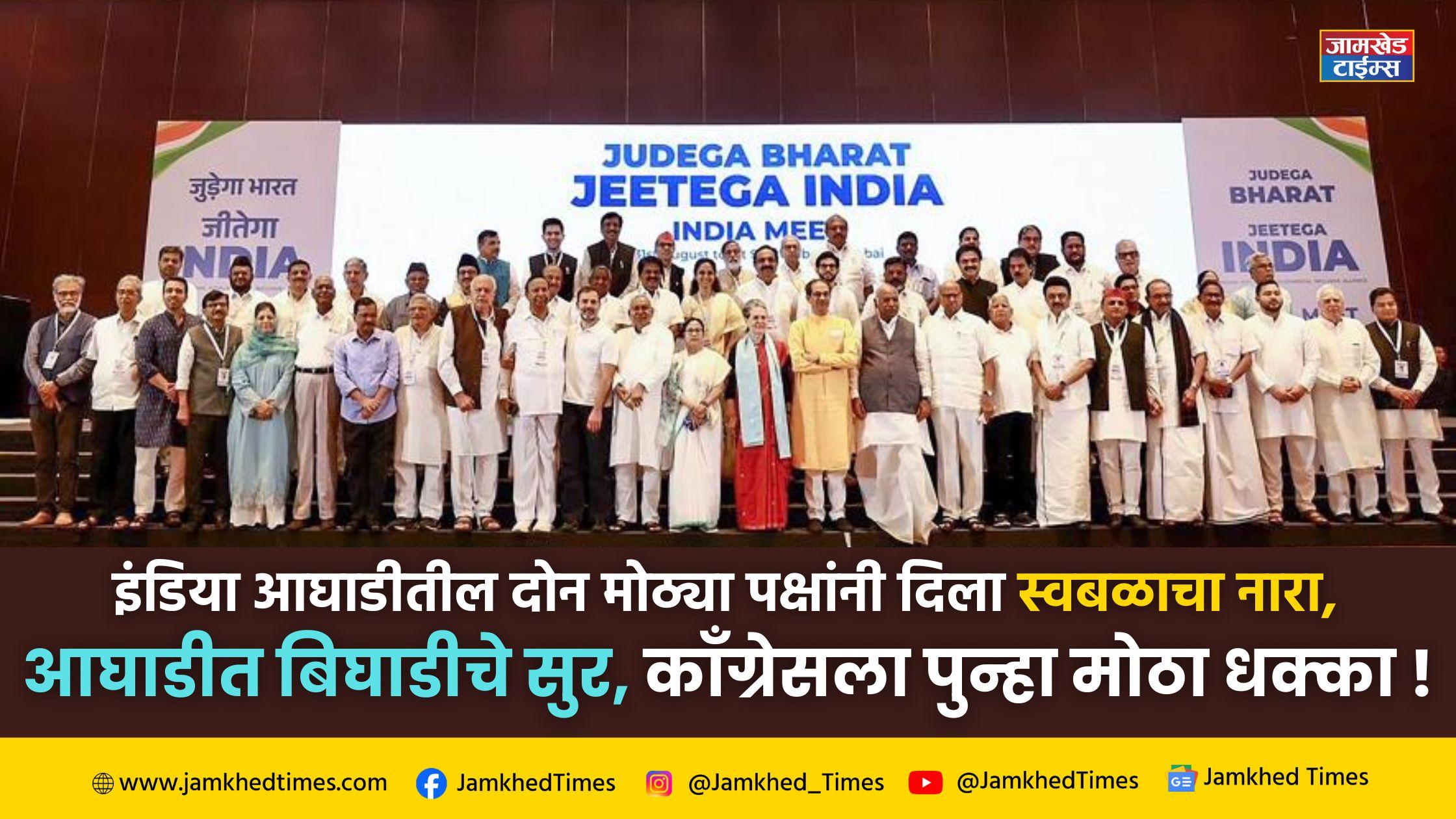 नवी दिल्ली : आगामी लोकसभा निवडणुकीच्या तोंडावर भाजपविरोधात विरोधकांनी बनवलेल्या इंडिया आघाडीला बुधवारी जबरदस्त तडाखा बसला. इंडिया आघाडीतील दोन मोठ्या पक्षांनी स्वबळाचा नारा दिल्याने आघाडीत बिघाडी झाल्याचे स्पष्ट झाले आहे. इंडिया आघाडीची एकजूट आता फुटीच्या उंबरठ्यावर आल्याने काँग्रेस पक्षासाठी हा मोठा धक्का मानला जात आहे.